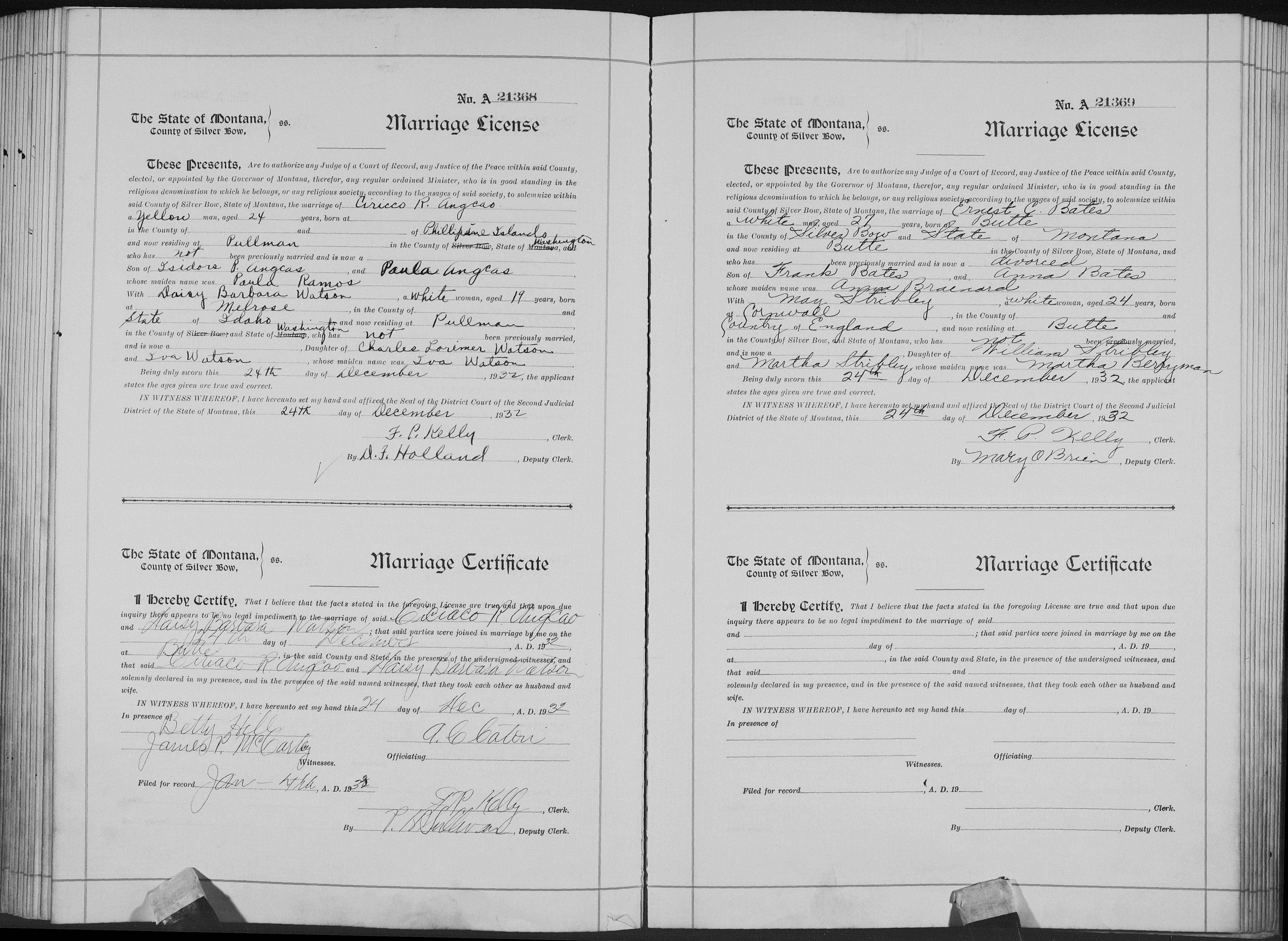 Marriage: 24 December 1932 — Butte, Silver Bow, Montana USA |
