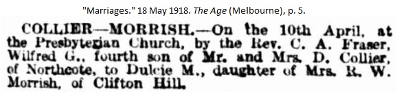 Marriage: 10 April 1918 — Australia |